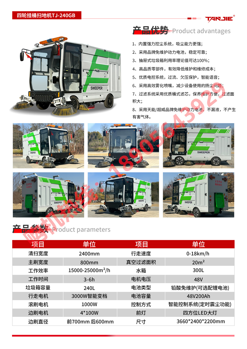 荆门坦洁四轮挂桶扫地车TJ-240GT