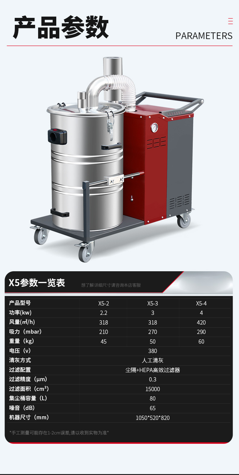 荆门坦洁380V双桶不锈钢工业吸尘器X7系列